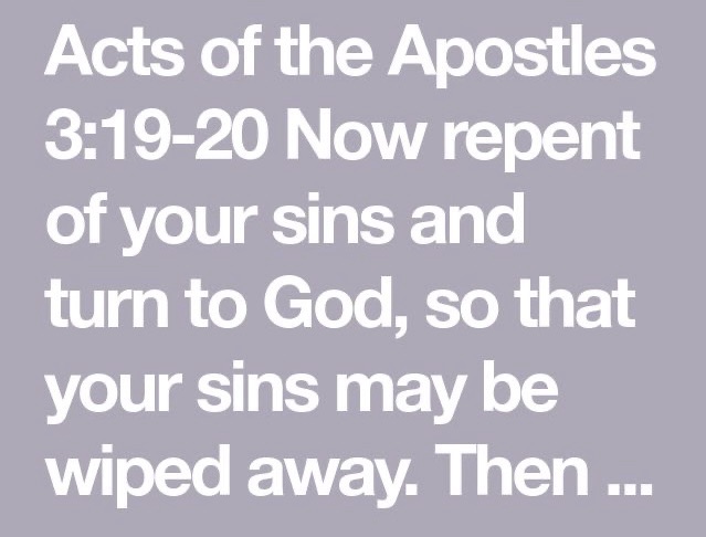 “അതിനാല്, നിങ്ങളുടെ പാപങ്ങള് മായിച്ചുകളയാന് പശ്ചാത്തപിച്ച് ദൈവത്തിലേക്കു തിരിയുവിന്. നിങ്ങള്ക്കു കര്ത്താവിന്റെ സന്നിധിയില് നിന്നു സമാശ്വാസത്തിന്റെ കാലം വന്നെത്തുകയും, നിങ്ങള്ക്കു വേണ്ടി ക്രിസ്തുവായി നിശ്ചയിക്കപ്പെട്ടിരിക്കുന്ന യേശുവിനെ അവിടുന്ന് അയയ്ക്കുകയും ചെയ്യും.”