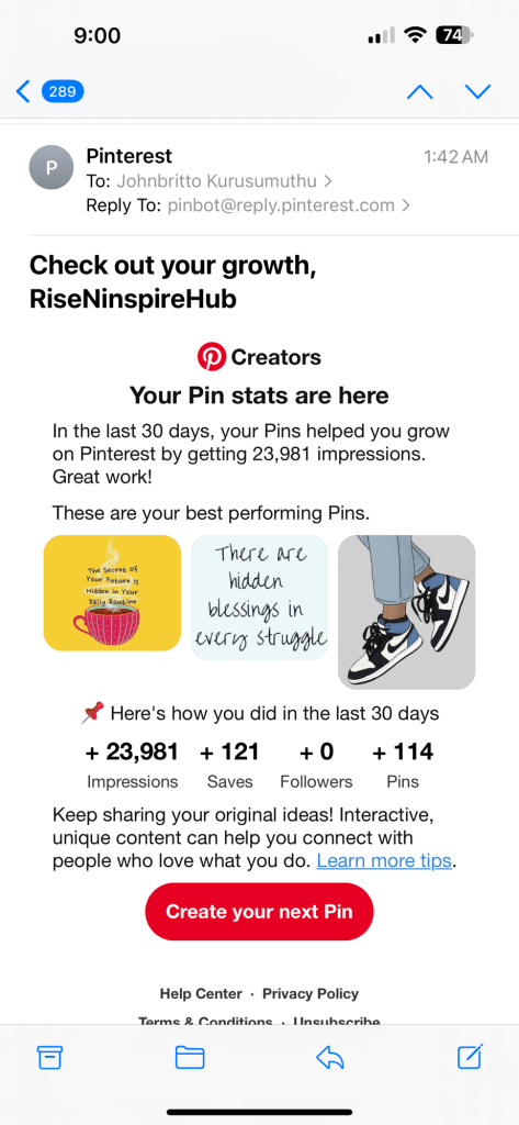 This report analyzes the performance of my Pinterest account, RiseNinspireHub, as of today. Here’s a breakdown of the key metrics: