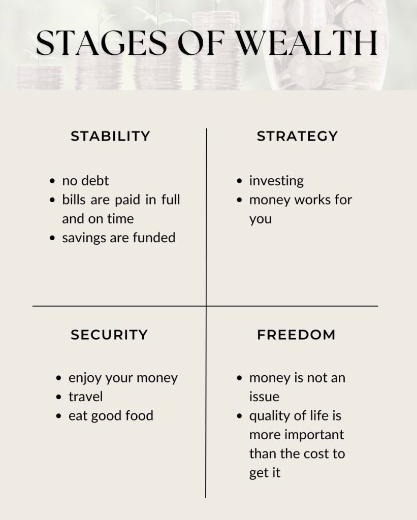 Achieving financial well-being is a journey, and understanding the milestones along the way is crucial. The “4 Stages of Wealth” framework outlines the significant steps you can take on your path to financial freedom. Each stage represents a shift in your relationship with money, guiding you from basic stability to a life where financial constraints no longer dictate your choices.