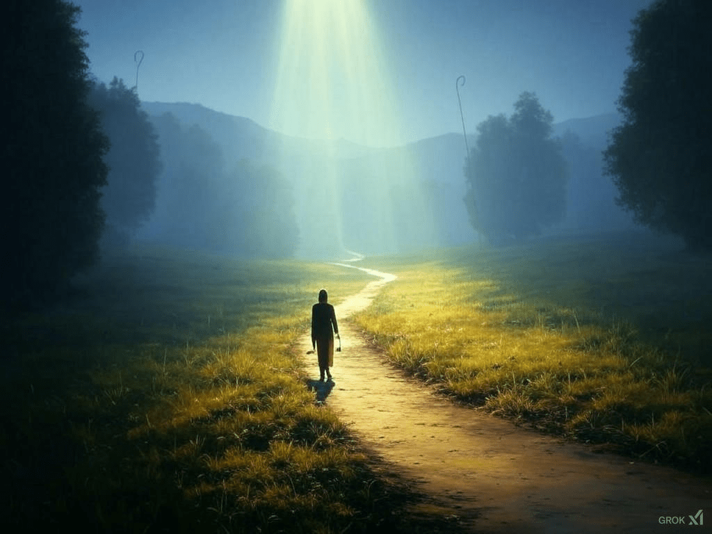 Close your eyes. Breathe deeply. Imagine standing at the edge of an unknown path, shrouded in shadows. Feel God’s hand gently leading you forward. With each step, darkness recedes, replaced by warm light. Rough terrain smooths beneath your feet. Whisper: