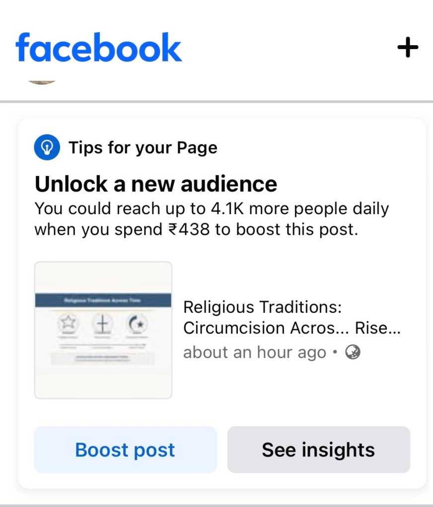 “You could reach up to 4.1K more people daily when you spend ₹438 to boost this post.”