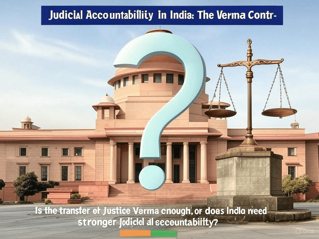 The transfer of Justice Verma, instead of pursuing impeachment or legal proceedings, highlights the systemic shortcomings of India’s judicial accountability framework.