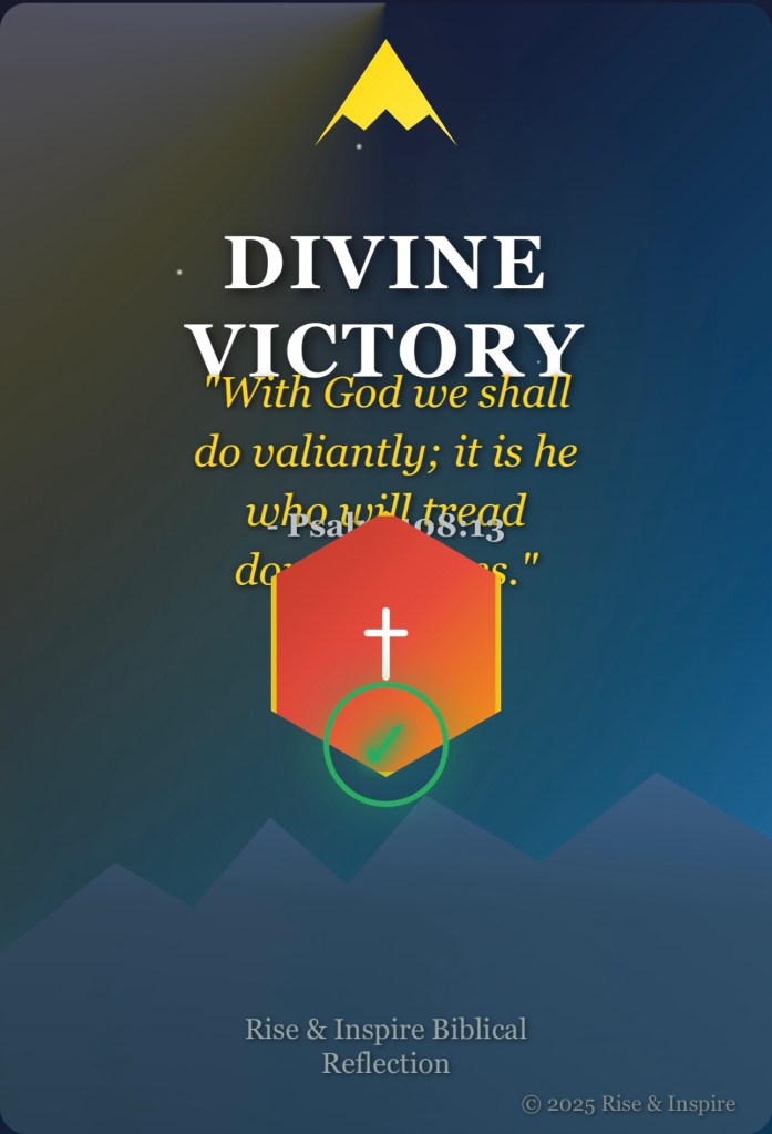 Discover divine victory through Psalm 108:13 in today’s Rise & Inspire Biblical reflection. Explore deep scriptural insights, scholarly wisdom, and practical applications for modern battles. Find strength in God’s partnership for triumphant living.