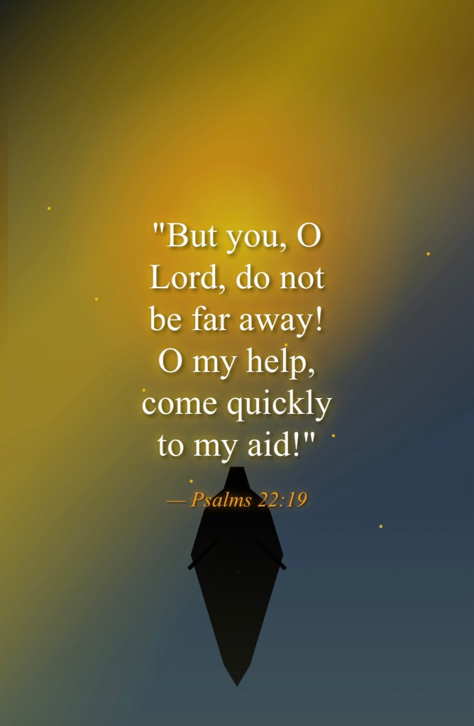 “But you, O Lord, do not be far away! O my help, come quickly to my aid!”Psalms 22:19 (ESV)