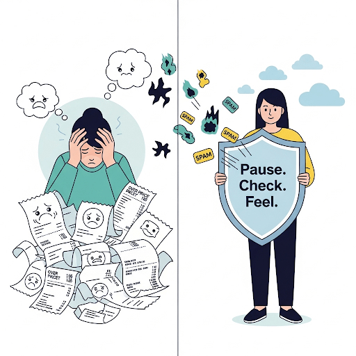 I no longer see myself as a victim of these situations. I’m a learner. Each time I get fooled, I’m gathering data for a better defence. I practice in low-stakes situations so the habit becomes automatic.