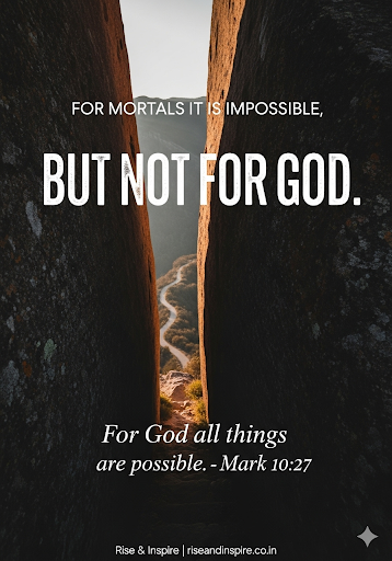 I write to you today not with a complex theological treatise, but with a simple, profound, and life-altering truth that has echoed through the ages, offering hope to the hopeless and strength to the weary. It is a verse that has comforted saints, challenged sceptics, and redirected the course of countless lives. Today, we sit together with the words of our Lord Jesus Christ from the Gospel of Mark: “Jesus looked at them and said, ‘For mortals it is impossible, but not for God; for God all things are possible.’”