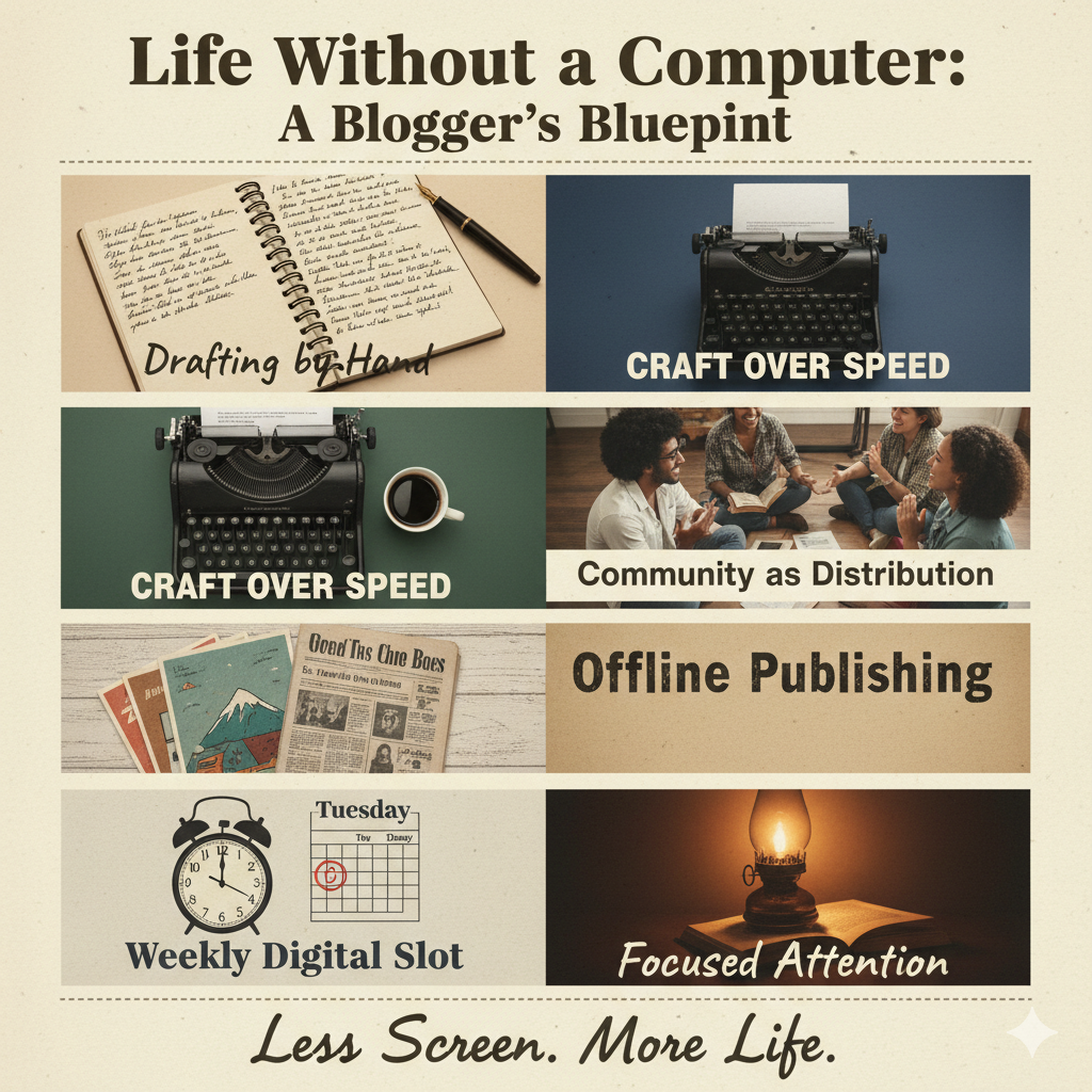 Take away the computer and you don’t just lose a tool—you rewrite your entire rhythm of living, working, and creating. What emerges is not emptiness, but a sharper focus on craft, human connection, and deliberate choices. This post explores what life and blogging look like when the screen disappears.