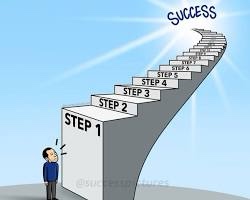 This cartoon image is more lighthearted and playful, but it still conveys the message that the journey to success begins with the first step. The cartoon character is shown taking a step up a ladder to success, which symbolizes the progress that we make as we work towards our goals.