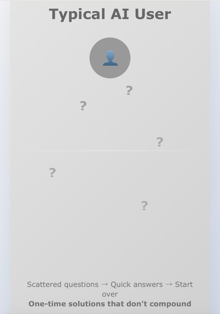 The gap between AI users and AI power users isn’t technical knowledge—it’s systematic thinking. While others ask for fish, power users build fishing systems. While others solve today’s problems, power users build capabilities that solve tomorrow’s challenges.