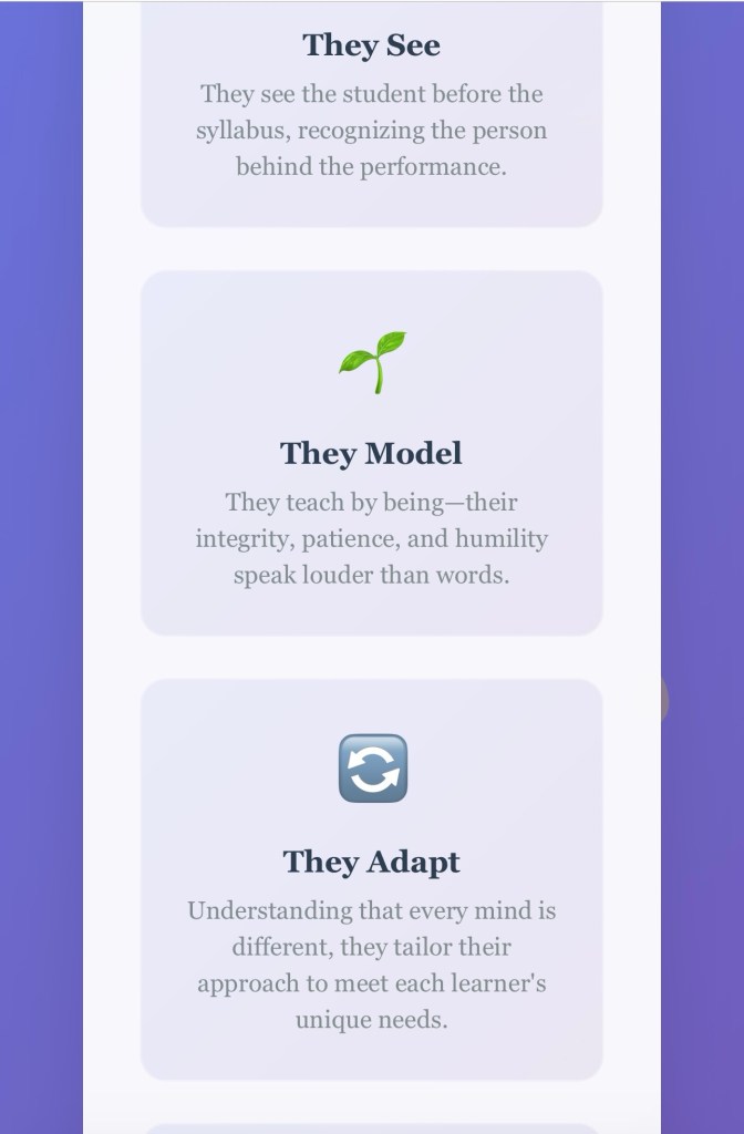 There’s a reverence in the way great teachers approach their work. They don’t treat the classroom as a job site—it’s a sacred space. They enter with purpose, knowing that their words, actions, and silences can echo for decades.