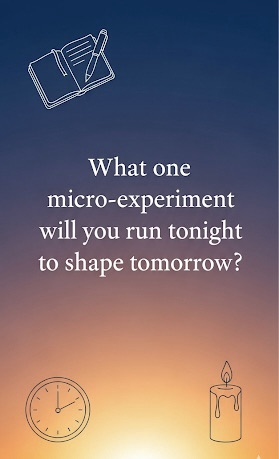 Tonight, I’m running a small “evening lab”: I’ll pick one micro-experiment—like writing a Future Letter or doing an Undo Ritual—to shape tomorrow intentionally.