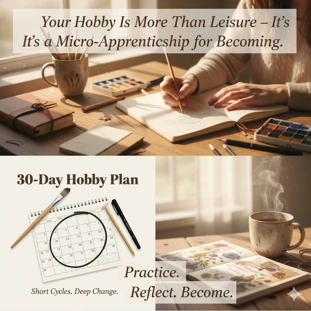 A hobby can be all three at once: a refuge, a skill-builder, and a self-prototype. Call it a micro-apprenticeship—a sequence of short, purposeful cycles where you: