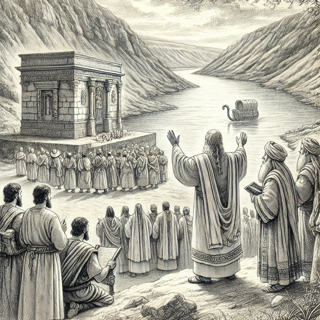 This pencil sketch is suitable for this blog post on Joshua 3:5. It captures the moment of sanctification and divine guidance as the Israelites prepare to cross the Jordan River.