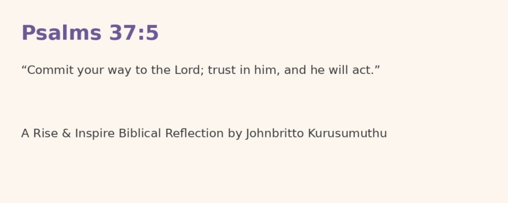 One morning, exhausted by all the striving, he read Psalm 37:5 as if for the first time: “Commit your way to the LORD; trust in him, and he will act.” The invitation to roll his burden toward God struck him with new force. He realised he had been asking God to bless his own way, rather than truly committing his way to God.